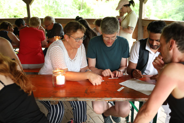 Andreas Brosien, Ruth Schreiber und Matheus Piechaczek hatten ein Quiz vorbereitet, an dem mit großem Eifer teilgenommen wurde. Auf der Wiese wurde bis spät in die Nacht Wickingerschach und andere Spiele gespielt.